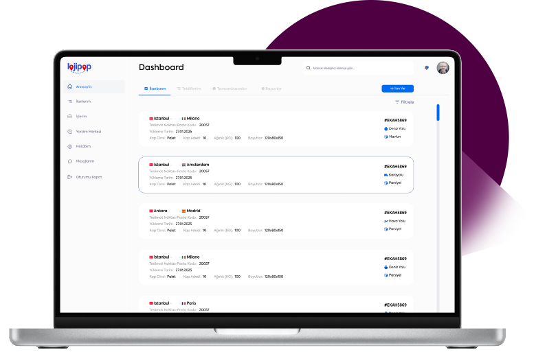 Lojipop yük sahiplerine güvenli bir tedarikçi ağına erişim ve rekabetçi fiyatlar sunarken, tedarikçilere de yeni müşterilere ulaşma imkanı sağlar. Lojipop, lojistik sektöründe dijital dönüşümü teşvik ederek, hem yük sahipleri hem de tedarikçiler için verimliliği artırmayı hedefler.